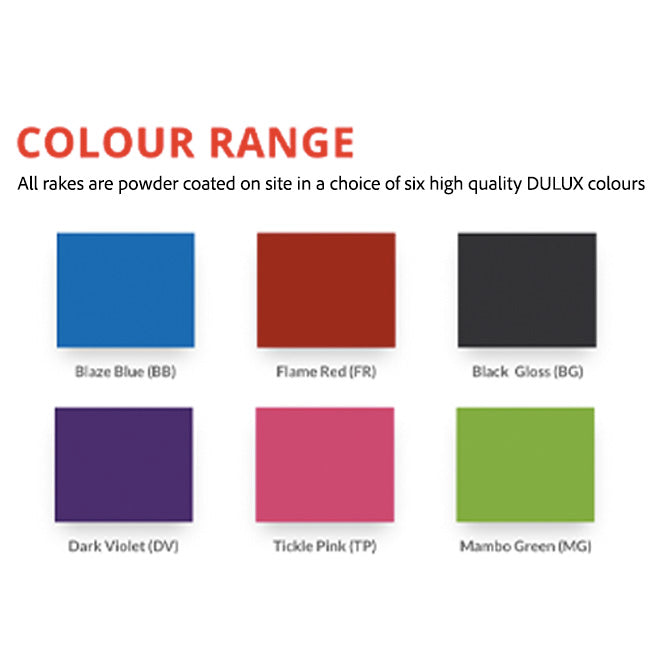 All Millenia Rakes are all powder coated on site in high quality DULUX colours.