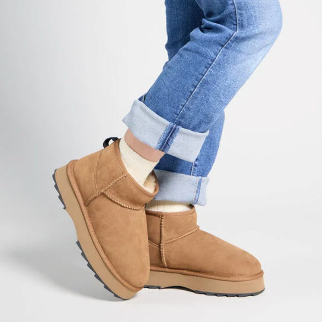 All the comfort you crave, lifted. The Sharky Micro Flatform takes cosy to new heights with a plush sheepskin lining, water-resistant suede outer, and our signature Sharky sole reimagined as a bold platform base. The micro cut keeps things modern and easy, while the elevated sole adds that extra bit of attitude. It’s your go-to for cold-weather cool, built the EMU way.