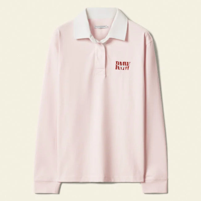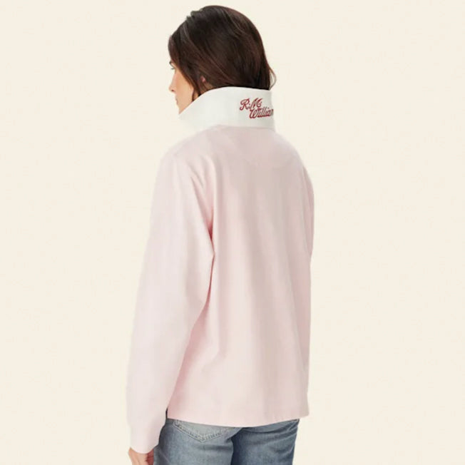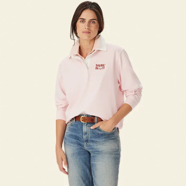 Our organic cotton rugby, featuring a brushed twill collar, two-button placket, Heritage logo embroidery, and side-split back hem for timeless style.
